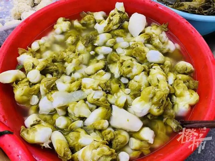 当然我没忘记我的初心是来买冬腌菜的。阿平的冬腌菜腌得酸咸度正好,今天买7元一斤。