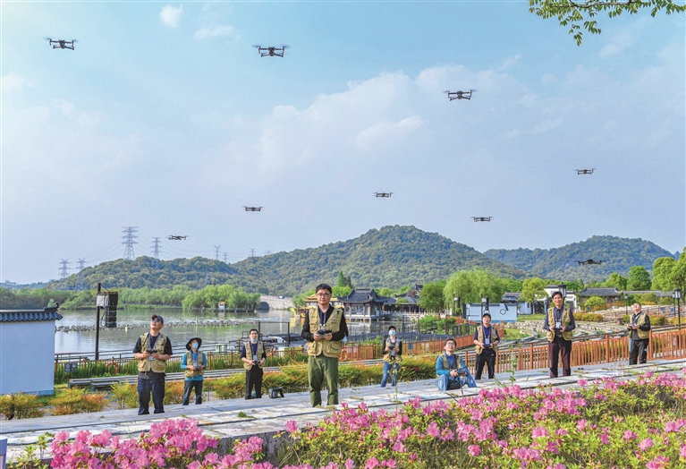 萧山区无人机协会昨日在湘湖成立,这是我省首个无人机协会。协会负责人表示,今后将加强对会员的培训与管理,在安全飞行的情况下发挥航拍优势,为萧山的发展及应急救援出一份力。图为会员们在对湘湖进行航拍。