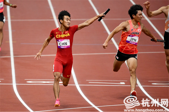 比赛中,中国队从第8赛道出发,陈冠锋第一棒起跑,谢震业顺利接棒后持续领先,此后第三棒一度被日本队反超,但凭借最后一棒陈佳鹏的奋力冲刺,在撞线前实现大逆转。
