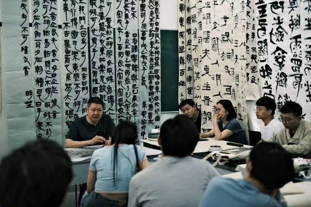 一大早,田维兴、卢忠海等社区书法爱好者就带着自己的作品上门了。“这幅作品没有技法的问题,在用墨的时候,多加一些水,呈现效果更佳。”“笔法再洒脱一点,不必拘泥于单一的形式”……在认真看了几位老人的字帖后,滨江区文化特派员、之江书画院执行院长蒋采一一为大家开出了“诊断书”。