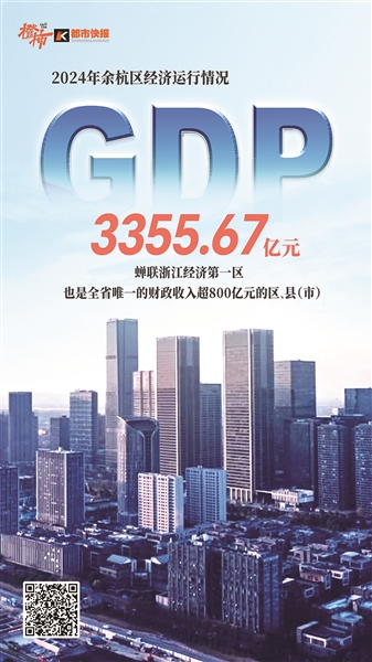昨天,余杭揭晓2024年地区生产总值(GDP)成绩:3355.67亿元,同比增长6%,蝉联全省第一。