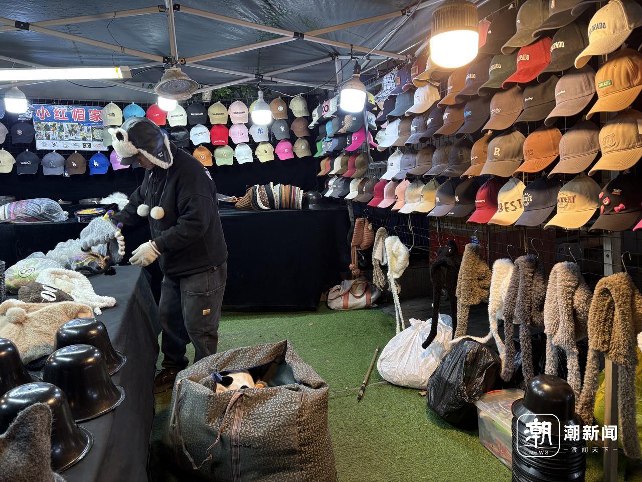 赵希龙在武林夜市苦恼大风的时候,55岁的张伏干到达位于吴山夜市的摊位,开始将装在拎袋中的帽子一一摆起来。最贵的五六十元一顶,便宜的二十多元,从简单的鸭舌帽到造型可爱的卡通绒帽,他的摊位上都有。