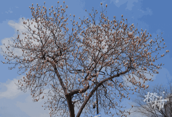 今天,武林路的玉兰树还多是花苞状态,由于今年初春相较以往气温偏低,加之本周阴雨为主,目前还未到最佳赏花日期。