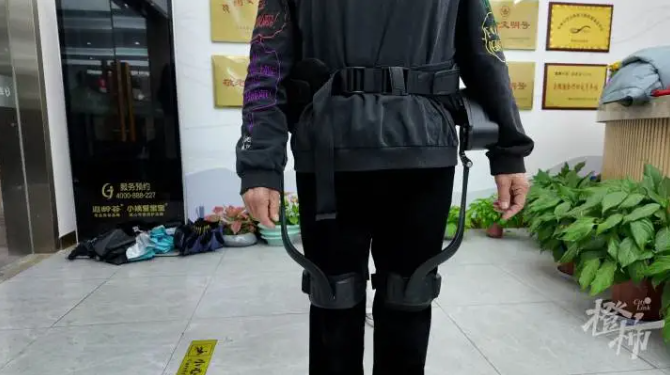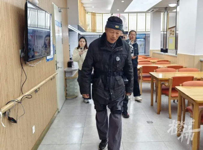 “穿上设备以后走路的时候很轻松,抬腿都不需要自己用力。”汤子根是杨家牌楼社区的居民,今年69岁的他,在“踏山”的协助下,“轻松”地绕着养老服务中心走了两圈,还意犹未尽。