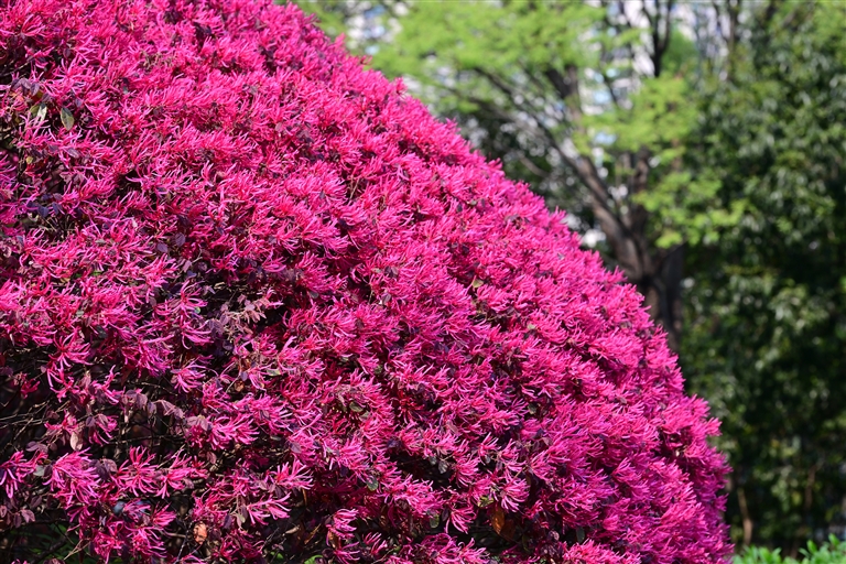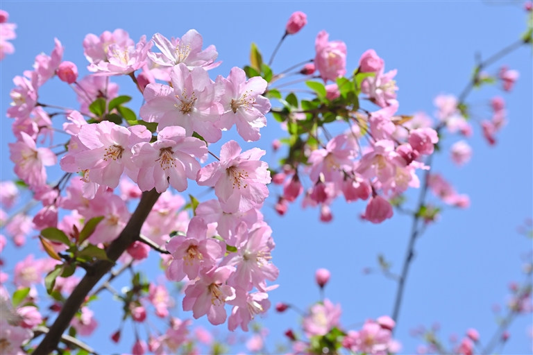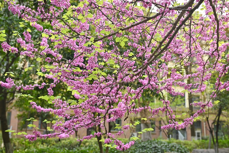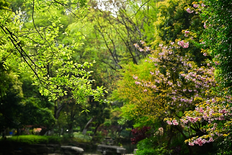 粉白樱花如云栖枝桠,金浪翻滚的油菜花海在田垄间鎏金,新抽的柳芽与香樟嫩叶在暖阳中私语,织就一张翡翠色的生机网。