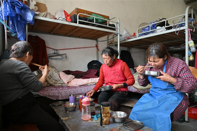 日暮时分,青砖宿舍升起炊烟。大通铺上碎花被褥整齐码放,不知谁起的采茶调子渐渐汇成断续合唱,沙哑乡音在屋内回荡。