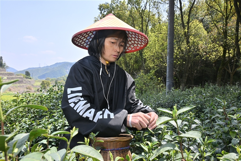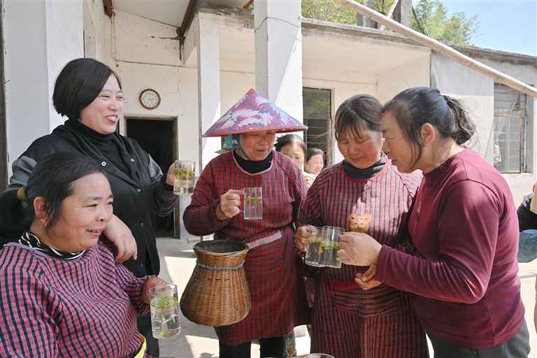 难得空闲,女工们围坐院中冲泡新茶。有人用手机给家人展示杯中舒展的茶针,热气袅袅升起时,山风裹着鸟鸣掠过她们微驼的背影。