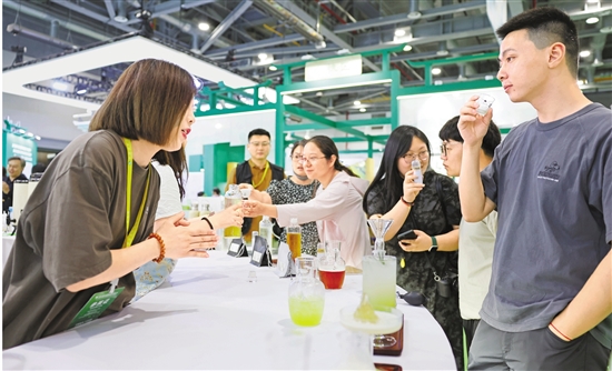 在第七届中国国际茶叶博览会现场,各种新茶饮受到年轻人的青睐。 记者 徐文迪 摄