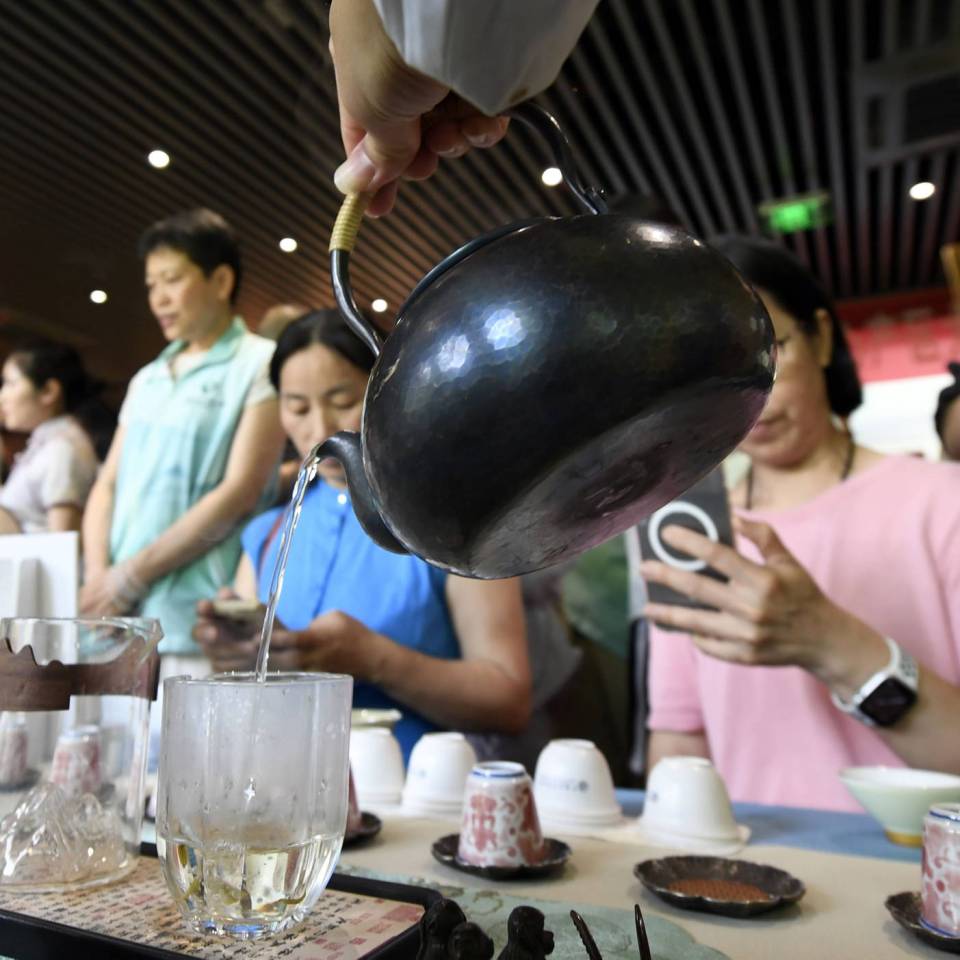 6月18日,“第四届西湖龙井茶核心产区大师别茶会”在中国茶叶博物馆举办。本届别茶会以“技能引领·同心发展”为主题,来自西湖龙井茶核心产区的20位制茶技能大师携各自所制好茶同台品鉴,并由茶艺师现场交流展示西湖龙井茶的“十大冲泡技法”,感受龙井茶的不同滋味,延续白居易“别茶人”雅趣。本届别茶会还首次向市民游客敞开大门,让更多人邂逅西湖龙井炒茶技艺的活态传承、品尝技能大师制作的“茶中瑰宝”。