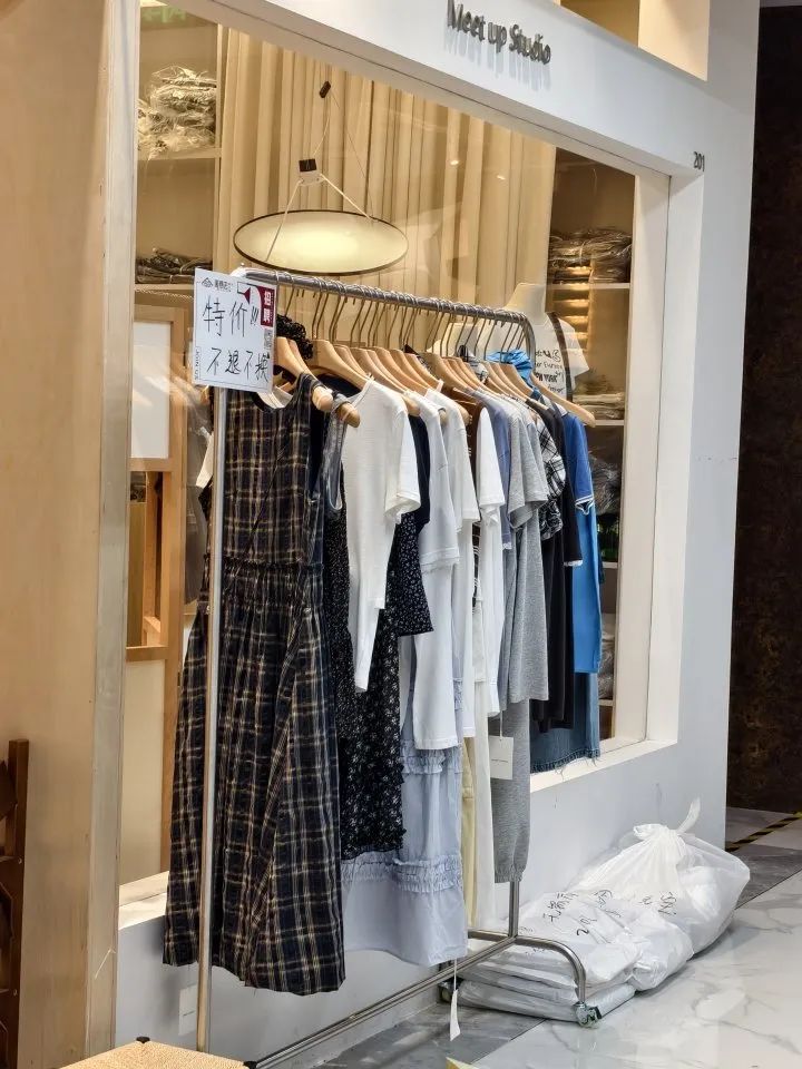 中纺中心服装城有很多工作室和品牌集合店,楼层众多,目前清仓情况会比意法服饰城开放一些,有些档口门口也挂上了特价衣服,少数几家档口已经开始装修了。