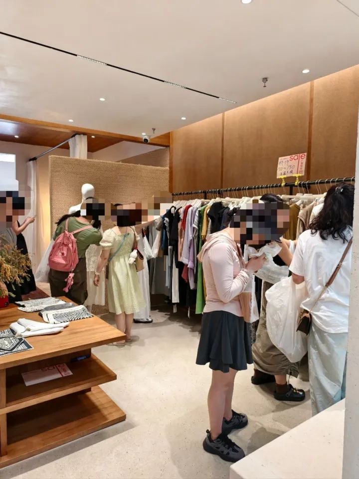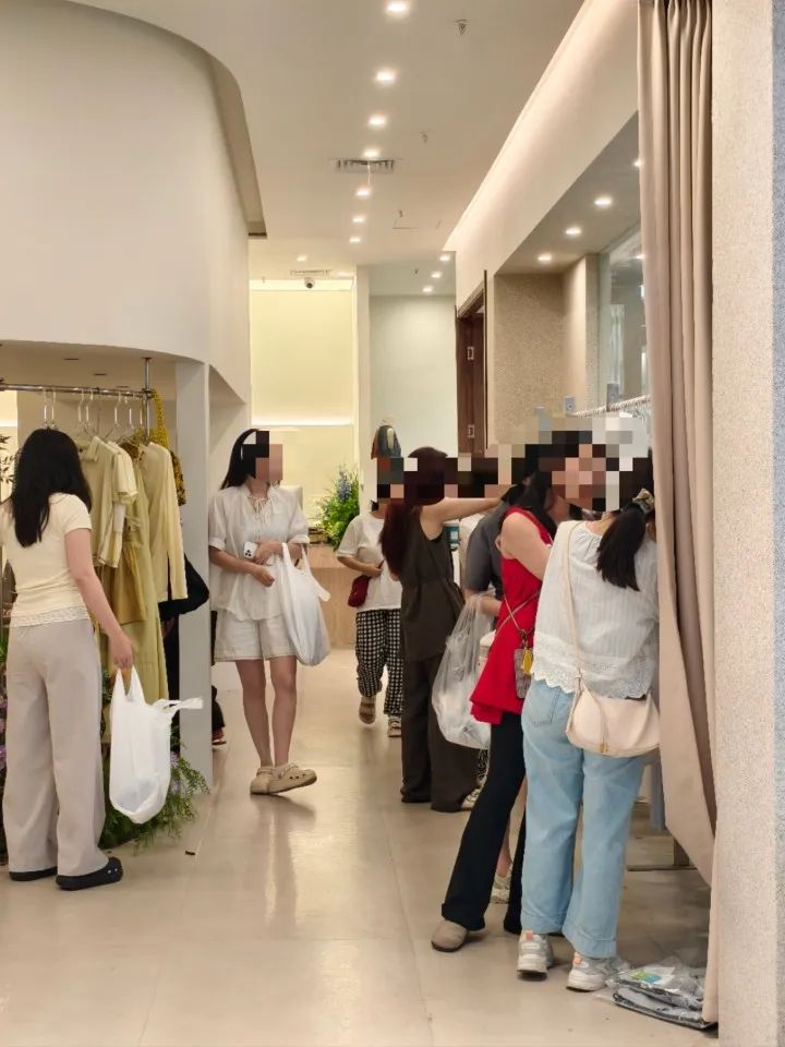 周末的新意法人流量很高,尤其是1-3层,随处可见结伴而来的姑娘,一些姑娘手上拎着大袋子,还有姑娘直接拿着行李箱装,显然已经买到了不少满意的衣服。