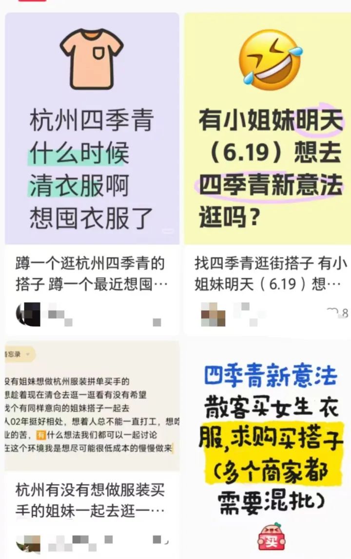 “周末有没有一起去四季青的?”“新意法求搭子!”“下午找两个小姐姐组团去逛新意法!”最近在社交平台上,各种找四季青买衣服搭子的帖子层出不穷。