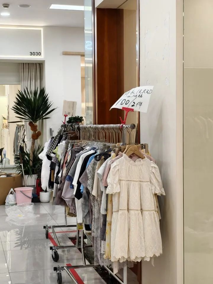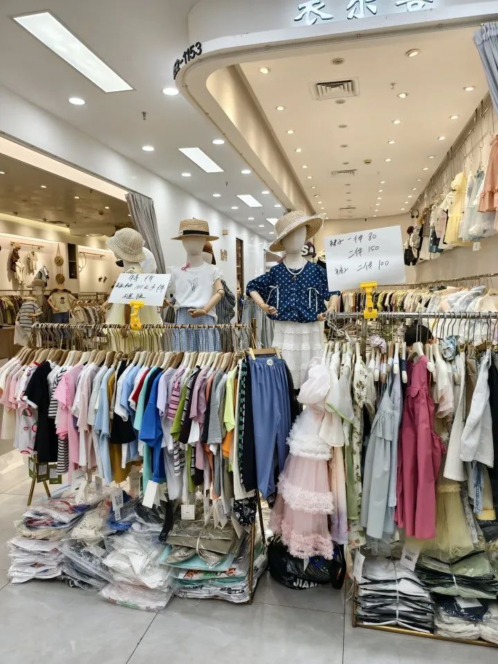 这个市场同样在夏季清仓中,一共有4层,因为是偏一批的市场,门口一口价区域的档口相对来说比昆龙要少一些,大童的衣服更多,价格上会贵个20%—50%左右,但衣服的品质和设计感相对来说会更好一点。