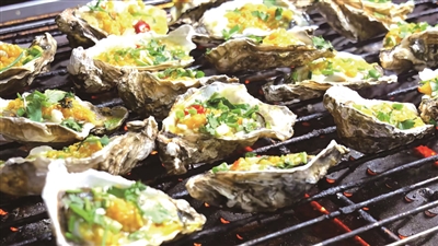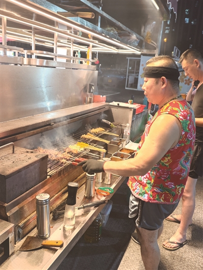 看着忙碌的孙子和孙媳,大伯笑得很开心。“我儿子儿媳在隔壁摊位,两个孙子烧烤,孙媳妇招呼客人,我和老伴帮他们带娃。”