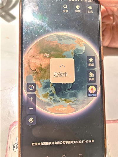 记者在沈老伯手机里的“百斗卫星实时导航”App看到,一行细小白字显示在屏幕下方:数据来自高德软件有限公司审图号;GS(2021)6352号”。查询沈老伯老家萧山沈家渡街景,App跳出“当前位置未开启街景模式,请尝试其他地区”。