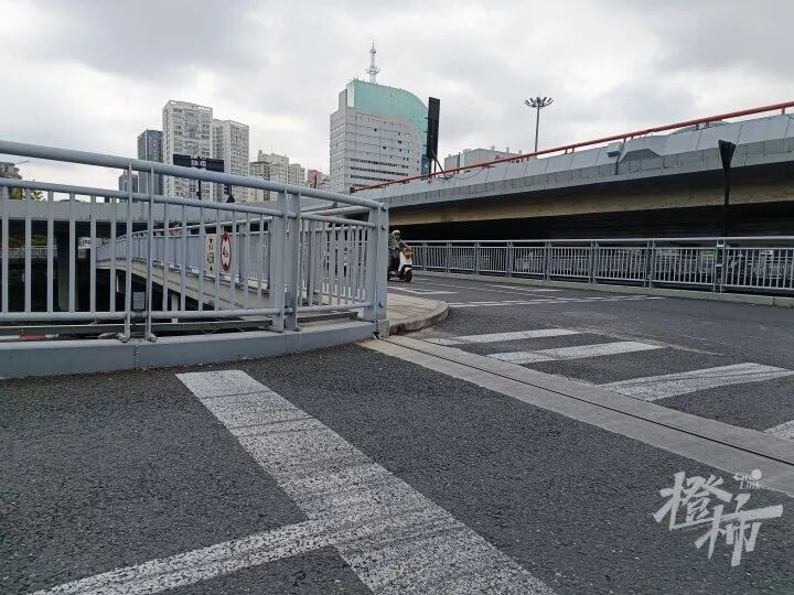 记者站在吴大姐的行车方向(从西向东),从她骑行的视觉角度观察北向来车,发现护栏确实阻碍了视线,就算盯着看北侧来车都看不太清,只有北侧来车越过护栏阻隔的区域才能发现,骑行中更难看清。从另一个大姐的角度看,护栏也会阻碍视线。