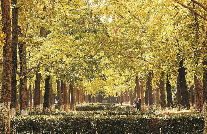 杭州日报讯 昨日,市民游客在拱墅区上塘路大关段的银杏林游玩,近期这片银杏林在寒风中黄染枝头,渐入最佳观赏期。当日杭城正式入冬,受寒潮影响,最低气温仅为4.5℃,比历年平均入冬时间提前了10多天。