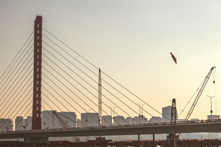 一位骑行的市民通过钱江三桥