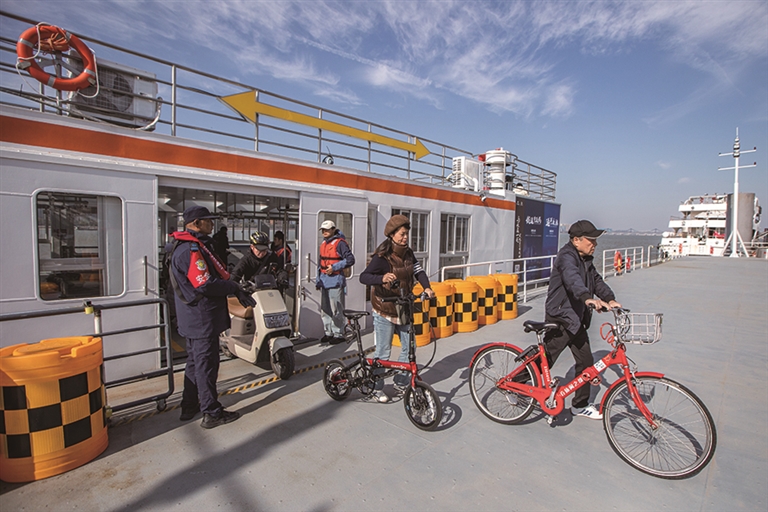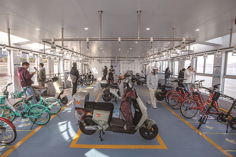 11月18日开通运营的钱塘江非机动车过江轮渡,连接北岸的城市阳台渡埠,以及南岸的奥体中心渡埠,供非机动车出行的市民免费乘坐。