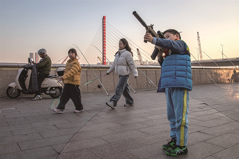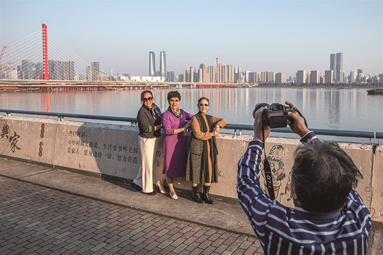 昨天下午,冬日阳光照在钱塘江上,暖意融融,一些市民特地来到钱江三桥附近的江边拍照打卡。