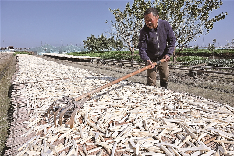 冬至将近,在瓜沥镇兴围村,农户们正忙着用传统风脱水工艺制作萧山萝卜干。