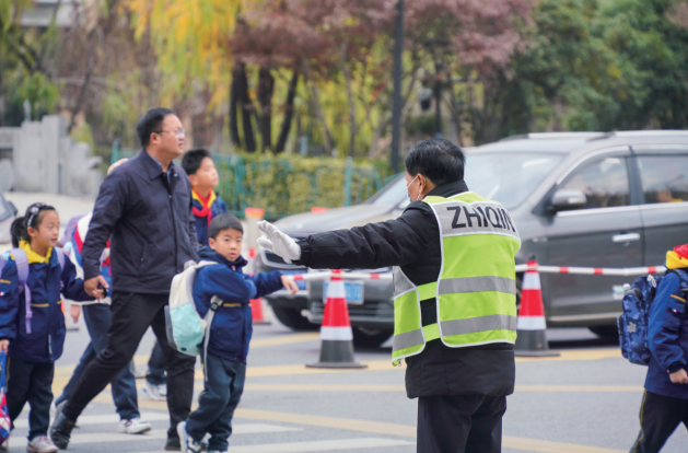 最近,杭十四中附校60岁老校长吴斌,因为一则护学视频火上了热搜。今年年底即将退休的吴校长,教龄42年,每天6点到校,坚持护学34年,温暖了很多人。他说:“学生的安全是最重要的,我想坚持守好最后一班岗。”图为昨天早上7点多,杭十四中附校南门外,吴校长身着反光背心指挥交通,保障家长学生安全有序通行。