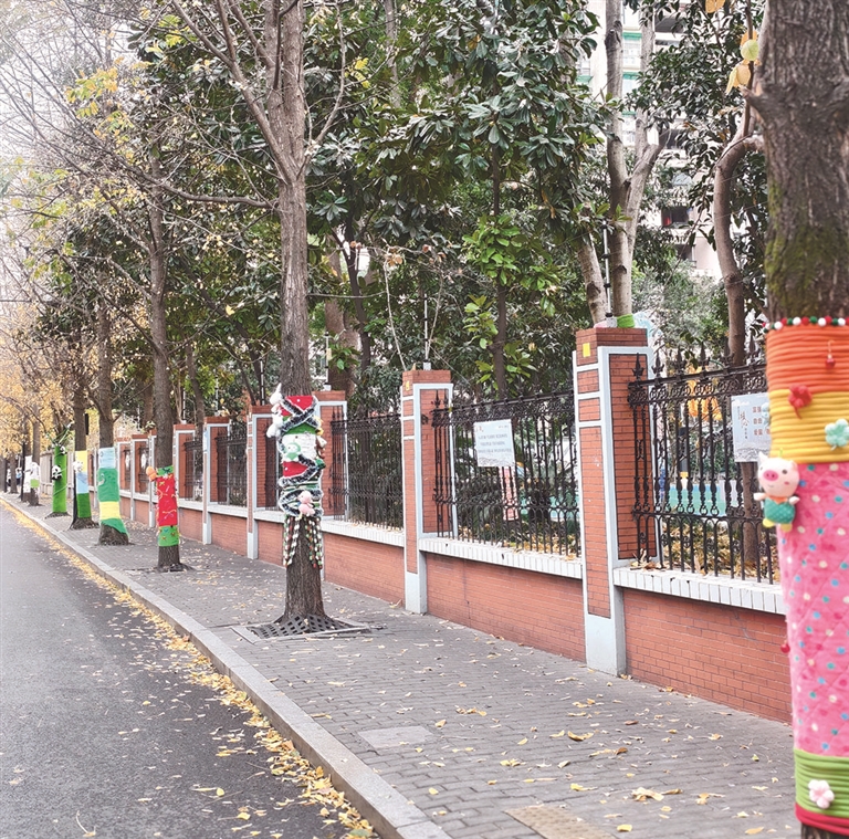 “树木穿上衣服后,不要说小朋友,我们的老师和路过的市民也倍感温馨,大家上班心情也会暖起来。”