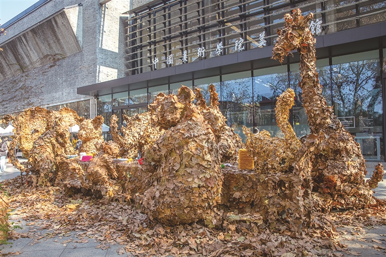 据了解,今年一共有二十余件落叶雕塑作品,除了在南山路美院门口外,还分布在上城区清波街道、萧山国际机场、邵逸夫医院等各个地点。