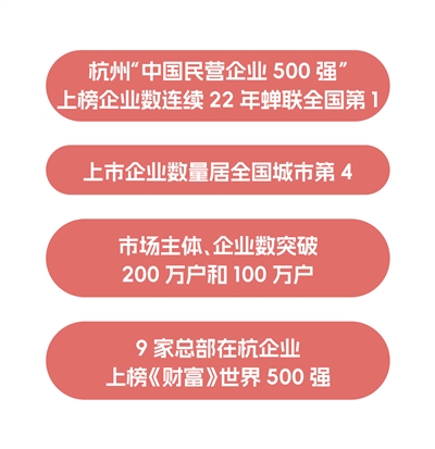市场活力的迸发更添发展底气。杭州“中国民营企业500强”上榜数连续22年蝉联全国第一,上市企业数量居全国第四,市场主体与企业数分别突破200万户和100万户,9家总部企业跻身《财富》世界500强。从“杭州六小龙”在数字经济领域异军突起带动数字产业爆发,到传统制造业向“智造”转型,这座城市用实打实的经济数据,筑牢了高质量发展的根基。