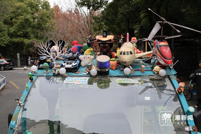恐龙、葫芦娃、直升飞机、玩偶……谁又不会被这样一辆“玩具乐园”车所吸引呢?更何况,这还是一辆环卫车。