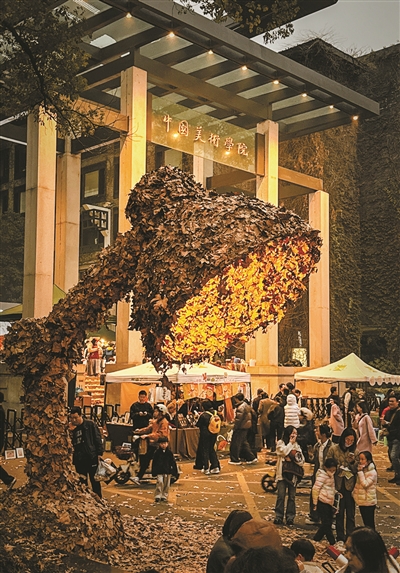 夜色里,“台灯”静静伫立,暖色的光透过落叶缝隙漫溢开来,引得路人纷纷驻足、拍照,成为冬日街头最火的“打卡点”。这盏名为《无尽之光》的网红装置,正是中国美术学院第19届秋叶艺术节的“开场惊喜”,也宣告着南山路上一年一度的浪漫正式回归。