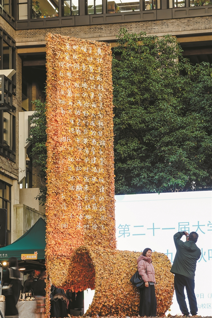 据悉,今年的秋叶艺术节收到来自全国各地的400余份投稿,最终遴选出15件优秀作品制作成品参展。本次展出的艺术装置,将在一周内陆续走出校园,于年底前在清波街道、湖滨街道、良渚街道、浙江大学、学军中学、邵逸夫医院、艺创小镇、萧山国际机场、钱江世纪城、钱江新城,浙江省血液中心湖滨步行街及少年宫献血点等地呈现,真正让艺术落地街头巷尾。