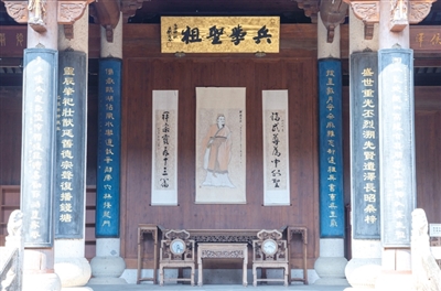 戏台遥遥相对的,是宗祠的核心厅堂——映雪堂,堂内正挂着“兵学圣祖”孙武的画像。