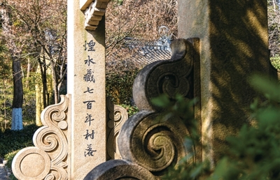 下孙文化村入口牌坊上写着“烟水藏七百年村落”