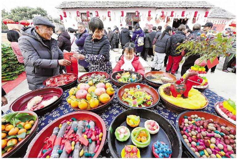 近日,临平区塘栖镇莫家桥村举办传统年味迎新春活动,在北塔漾畔张灯结彩,摆开打年糕、做米塑、炒瓜子、写春联等互动摊位,在水上搭起戏台,上演越剧、歌舞、武术等传统节目,重现水乡村落的过年民俗,让百姓共赏别具特色的水乡社戏。