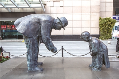 如今,在浙江大学医学院附属第二医院(浙大二院)大门口,能看到这么一组雕塑:一位戴着礼帽、身着西装的男士,正与一位穿着马褂的幼童相互作揖。这位男士,便是梅藤更。