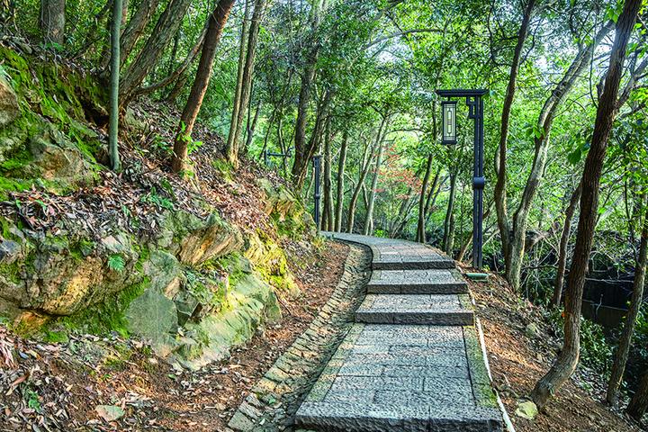 上山的路十分友好,走十来分钟后,就可以看到规整的人工登山阶梯,阶梯两旁都有网格护栏,即便是带小孩来爬山,也很安全。走累了,沿途还设有供游人休息的廊架。