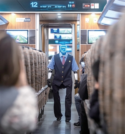 昨天,全国首个机器人乘务员“福兴”,登上杭州客运段“西子号”列车,与旅客互动。