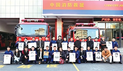 春节来临,中国美术学院20多名师生来到西湖区文新消防救援站接受消防培训,救援站班长魏政讲解了火灾危害、火险预防、如何扑灭等消防知识。魏班长说,师生们得知消防员们春节要坚守岗位,不能回家过年,就主动提出给他们画肖像。前天记者来到文新消防救援站,采访了消防员。
