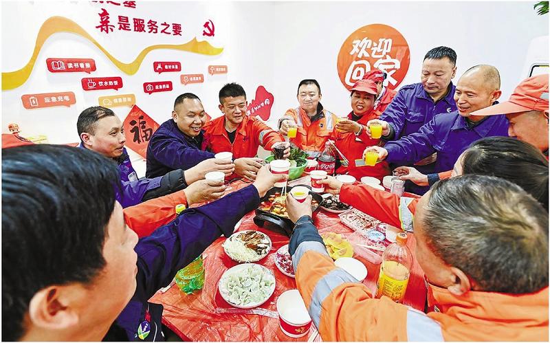 今年春节期间,全市85%的环卫工人坚守岗位,各城管驿站也开展了形式多样的庆祝活动:在西湖区三墩慧仁城管驿站,来自贵州威宁的保洁员徐贤贤放下扫帚拿起锅铲,为工友们做起了年夜饭;在上城区闸弄口京杭大运河党群服务站,投壶、游园、包饺子,环卫工人玩得不亦乐乎……