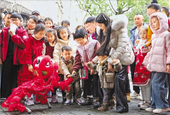 2月17日,以“国潮嬉游 马上有戏”为主题的开年大秀在杭州清河坊历史街区火热上演,传统舞狮与现代机器狗同场竞技,为游客献上一场传统与科技碰撞的新春大餐。