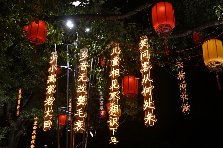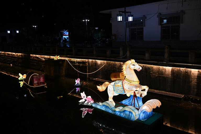 在城区,光影艺术扮靓街巷。“最忆市心桥”灯彩如梦如幻,城河公园的白马灯彩憨态可掬,江寺公园的古诗灯彩引人驻足,市民在移步换景间邂逅诗意。文博场馆里过大年,也成为新风尚。