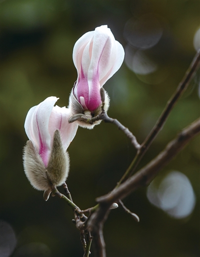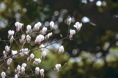 杭州最常见、种植数量也最多的是白玉兰,纯白色或者花朵底下带着紫色条纹,盛放时美得冰清玉洁,硕大又洁白的花瓣看得人心生欢喜;还有一种二乔玉兰,是白玉兰和紫玉兰的杂交品种。花瓣外头是紫色,里头是白色;紫玉兰,紫红色一片,开花很晚,要拖到近4月初才肯露面。它也不像其他玉兰高高壮壮,属于落叶灌木,植株很小,矮矮的。