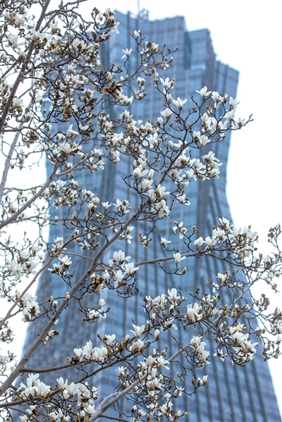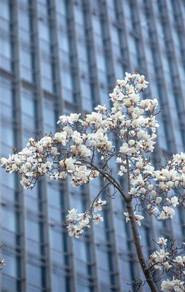 西湖文化广场,玉兰盛开。记者 陈中秋 摄