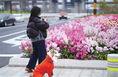 除了景区、公园,杭州的道路绿化也凭实力出圈。很多人发现,杭州的绿化带里种植了不少品种的花,例如郁金香、紫罗兰、三色堇、鲁冰花等。大家在社交平台上晒出自己拍摄的绿化带照片,做成了“杭州绿化带打卡攻略”。有网友说:“杭州绿化带的花比我婚礼布置得还要好看。”