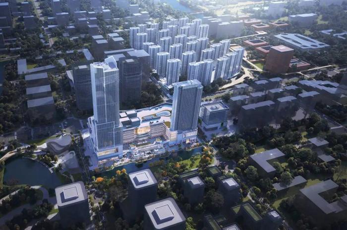 云城天街综合体位于杭腾未来社区东北角,总建筑面积约36万平方米,涵盖约13万平方米的龙湖天街(地上6层、局部7层,地下4层)、约200米长的甲A级超塔办公中心、高端行政酒店式公寓及邻里服务中心等多种业态。