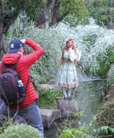 中国茶叶博物馆外喷雪花开得如梦似幻 记者 夏阳 摄