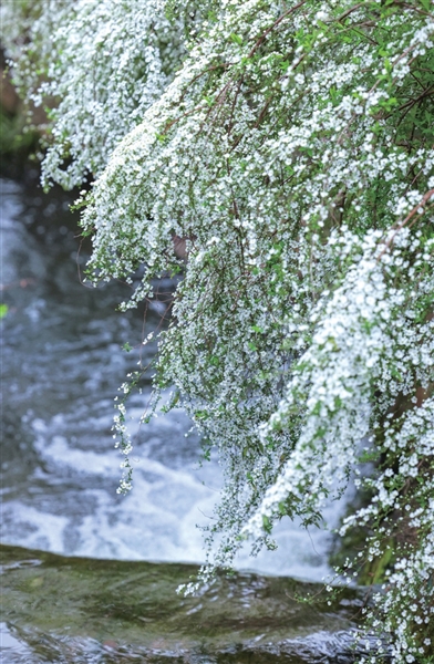 在百花争艳的春天,实在算不上华丽,靠什么赢过樱花、杏花们?主要靠量大。喷雪花的每一根枝条上都密密麻麻开满白色小花,就像是从树枝上喷出来一样,“喷雪花”这个名字就是这么来的,也有人称它们是春天里的“白雪公主”。