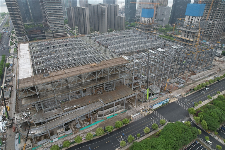 2021年5月18日,杭州国际博览中心二期项目在钱江世纪城奥体核心区开工建设。这座作为杭州国际博览中心“姊妹篇”的场馆,总建筑面积约46万平方米,采用装配式钢结构建设,致力打造绿色低碳新标杆。