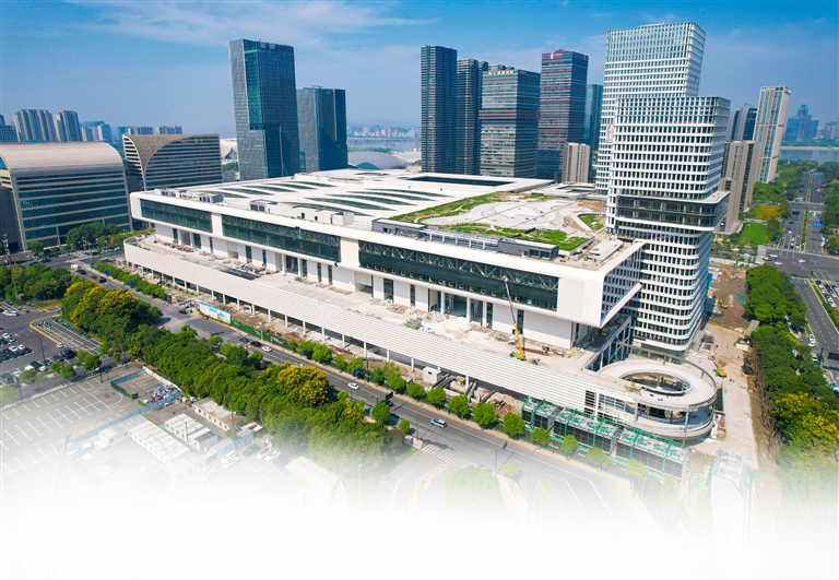 至此,国博一、二期展览总面积达15万平方米,场馆规模跻身全国大型会展综合体前列。这座集会展、办公、酒店于一体的城市客厅,以“水墨画卷”般的现代建筑姿态,成为杭州链接全球资源、展示国际形象的“重要窗口”。